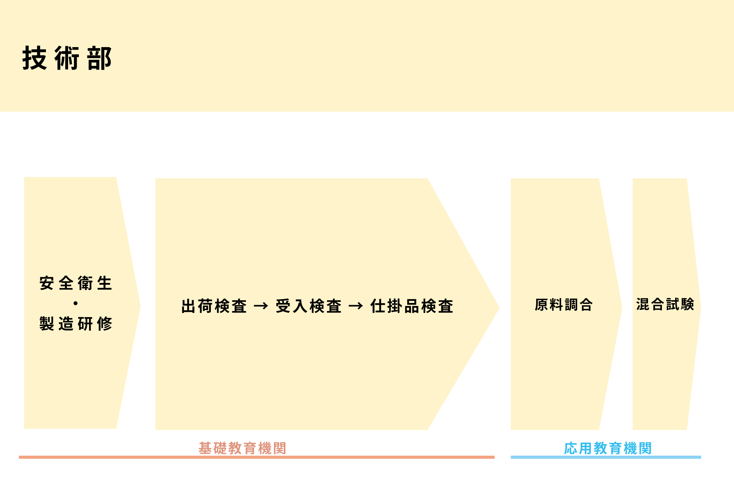 知識を頭に入れるだけではなく、それを応用できるようになること。また天然原材料を扱う以上、データに囚われすぎない発想や着眼点も必要です。教育期間としている6年間は、自分の感覚やセンスを磨く期間として経験値を積んでいただくために設けています。