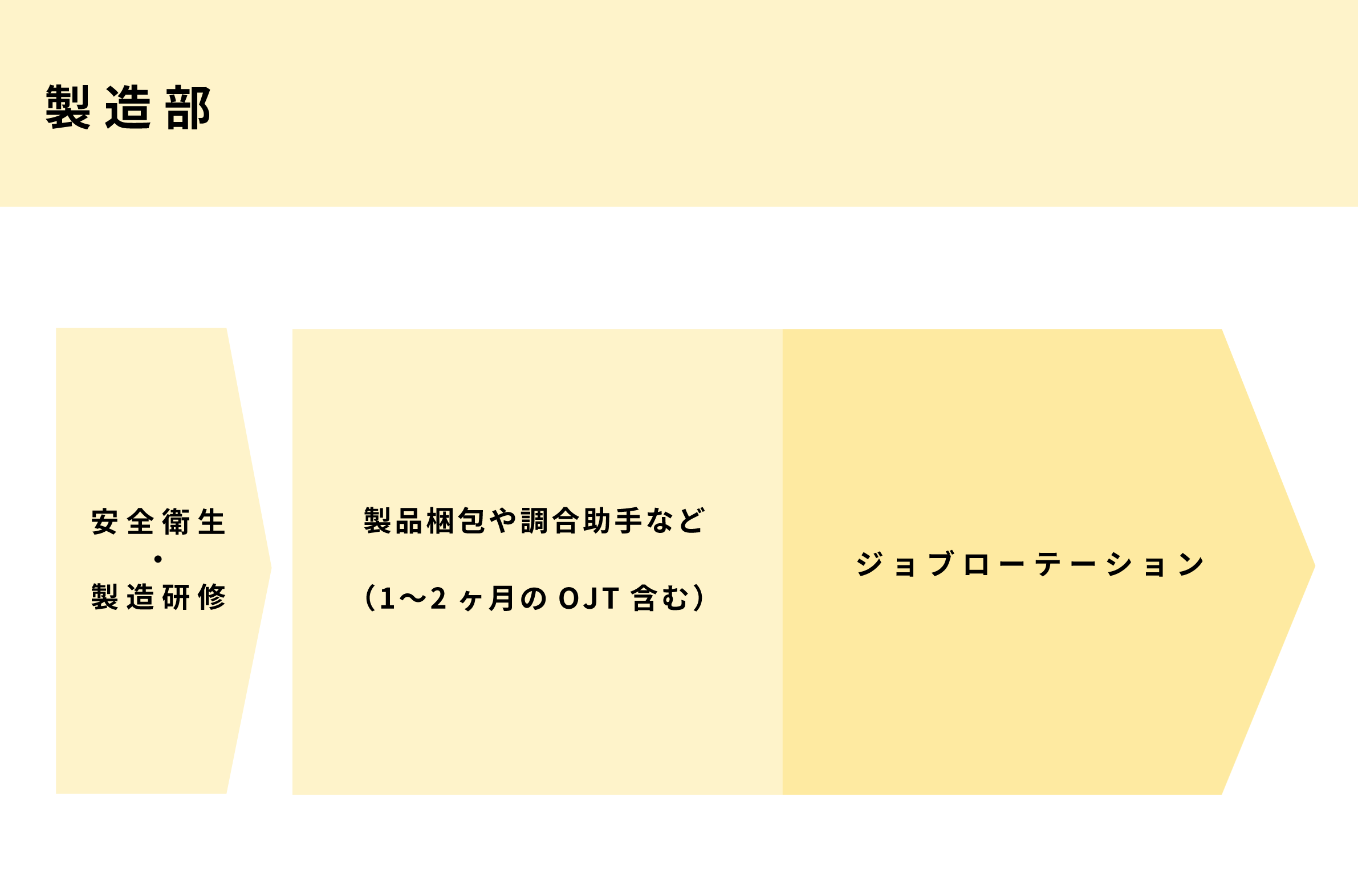 最初の3ヶ月は研修期間として担当の先輩社員がつきます。工場の安全運転で気を付けるポイントや、原材料の品質を維持するためにおさえるべきポイントなど、広い工場の中で習得していただきたいことはたくさんあります。研修期間が終わったら、本人の適性や会社の状況によって担当いただく業務が決定します。